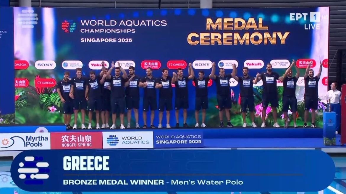 Μία μέρα μετά τον μοναδικό θρίαμβο της Εθνικής πόλο Γυναικών με την κατάληψη της κορυφής του κόσμου, η ομάδα των Ανδρών πήρε το ελάχιστο που άξιζε με βάση την εξαιρετική της παρουσία στο βάθρο της Σιγκαπούρης.