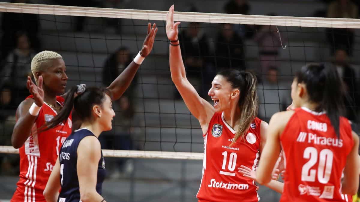 ΟΛΥΜΠΙΑΚΟΣ (Μπράνκο Κοβάσεβιτς): Ηλιοπούλου (0/2 επ.), Εμμανουηλίδου 5 (2/6 επ., 1 άσος, 2 μπλοκ), Κούμπουρα 33 (30/55 επ., 4 μπλοκ), Στεφάνοβιτς 7 (1/7 επ., 6 μπλοκ), Καρκάσες 2 (1/15 επ., 1 μπλοκ, 25% υπ. – 25% άριστες), Κόνεο 11 (8/25 επ., 3 μπλοκ, 58% υπ. – 42% άριστες) / Αρτακιανού (λ., 40% υπ. – 35% άριστες), Σαμπάτη (λ.), Αμπντεραχίμ 12 (8/25 επ., 3 άσοι, 1 μπλοκ)