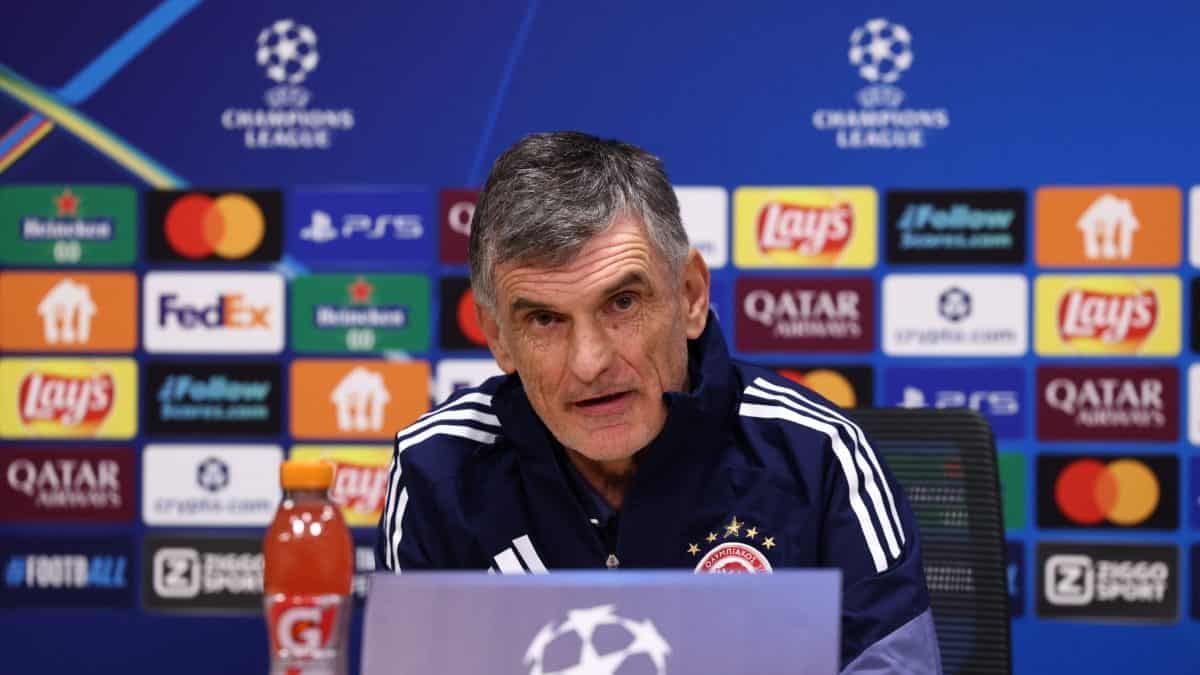 Αν είναι υπέρβαση το να περάσει ο Ολυμπιακός στην επόμενη φάση με βάση τους αντιπάλους που έχει: «Νομίζω ναι. Αν συμβεί θα είναι πολύ, μεγάλο, έχουμε παίξει με ομάδες με πολύ μεγάλα μπάτζετ και μεγάλη ιστορία. Αν βρεθούμε στις 24 ομάδες θα είναι πολύ μεγάλο. Πρώτα πρέπει να παίξουμε με τον Αγιαξ, που είναι ένας ιστορικός σύλλογος. Θα είναι ένας πολύ δύσκολος αγώνας, γιατί και εκείνοι με νίκη θα έχουν μικρές ελπίδες πρόκρισης».
