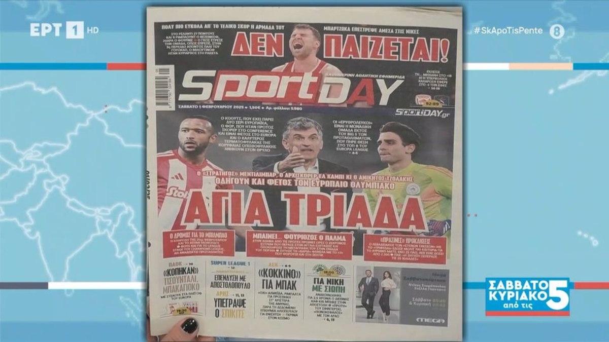 {“@context”:”http://schema.org”,”@type”:”VideoObject”,”name”:”Τα πρωτοσέλιδα των αθλητικών εφημερίδων | 01/02/2025″,”description”:”Τα πρωτοσέλιδα των αθλητικών εφημερίδων”,”thumbnailUrl”:”https://i1thumbs.glomex.com/dC1ibHU1bnRqdHo4bDUvMjAyNS8wMi8wMS8wNi8wNV8wM182NzlkYjk4ZjBiOTkyLmpwZw==/profile:player-960×540″,”duration”:”PT1M”,”uploadDate”:”2025-02-01T06:08:00.000Z”,”contentUrl”:”https://video-websearch-indexing.mes.glomex.cloud/4ee69a/v-d7gvn33lbeft.mp4″,”embedUrl”:”https://player.glomex.com/integration/1/iframe-player.html?integrationId=40599z1sklicf1dq&playlistId=v-d7gvn33lbeft”,”provider”:{“@type”:”Organization”,”name”:”glomex GmbH”,”logo”:{“@type”:”ImageObject”,”url”:”https://player.glomex.com/logo_v@2x.png”,”width”:136,”height”:146}}}