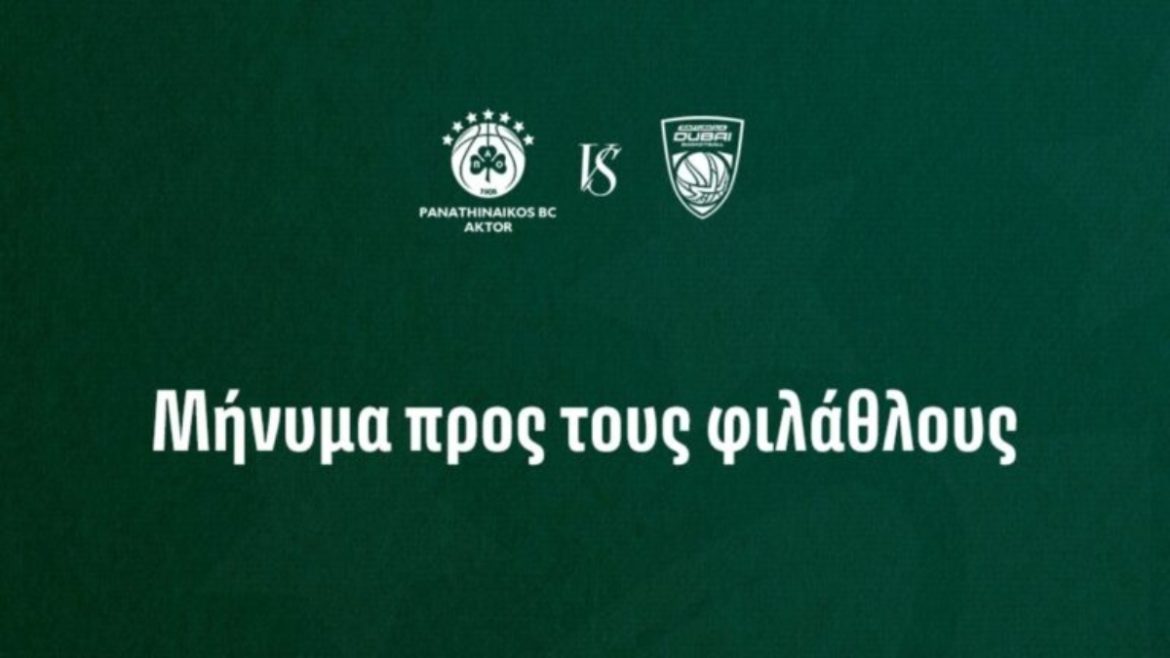 «Η ΚΑΕ Παναθηναϊκός AKTOR ενημερώνει το φίλαθλο κοινό εν όψει της αποψινής αναμέτρησης (20/11, 21:15) με την Dubai Basketball για την 12η αγωνιστική της κανονικής περιόδου της EuroLeague.