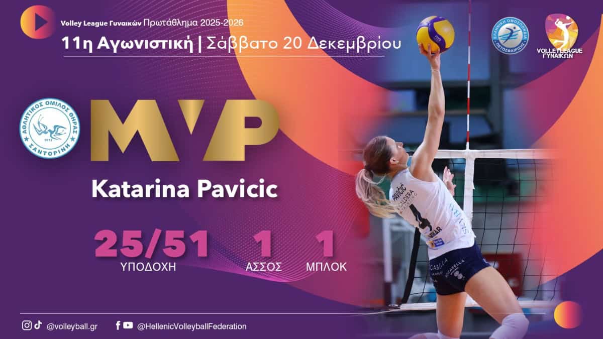 Η Πάβισιτς είναι η δεύτερη φετινή MVP του ΑΟ Θήρας μετά την Ανδρομάχη Τσιόγκα την 9η αγωνιστική.