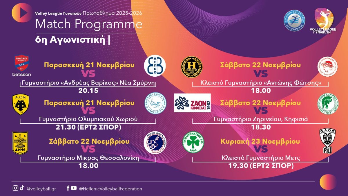 The post Volley League Γυναικών: Πρώτο σερβίς στην 6η αγωνιστική με δύο αναμετρήσεις appeared first on www.ertsports.gr.