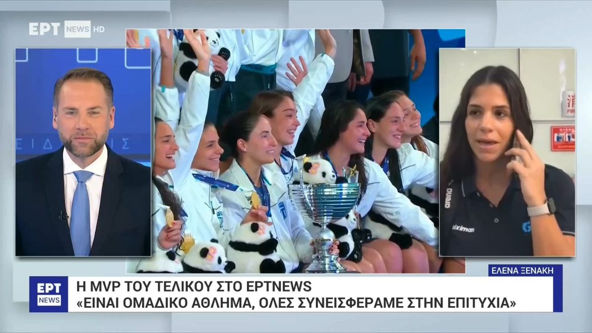 Η διεθνής φουνταριστή, μάλιστα, αναδείχθηκε πολυτιμότερη παίκτρια του τελικού για την Εθνική, καθώς σημείωσε τρία τέρματα κόντρα στην Ουγγαρία. Λίγες ώρες μετά την ιστορική επιτυχία, μίλησε αποκλειστικά στο αναλυτικό δελτίο ειδήσεων του ΕΡΤNews και τον Γιάννη Μούτσιο.